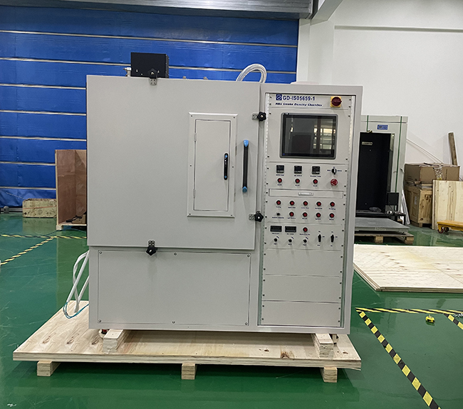 Arbeidsprinsippet for NBS røykstetthetstestkammer er å beregne den spesifikke optiske tettheten ved å måle lysoverføringen av røyken (i %) ved bruk av det innebygde optiske systemet til testkammeret. Minimum lysoverføring brukes vanligvis til å beregne den maksimale spesifikke optiske tetthet DS.